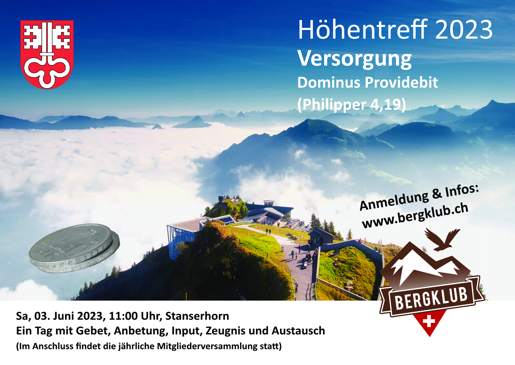 Wir freuen uns auf das nächste Höhentreff. Ein Tag in den Bergen um Gott zu loben, unser Land zu segnen und Ermutigung zu empfangen. In diesem Jahr geht es wieder in die Innerschweiz auf das Stanserhorn! >> Weitere Informationen |