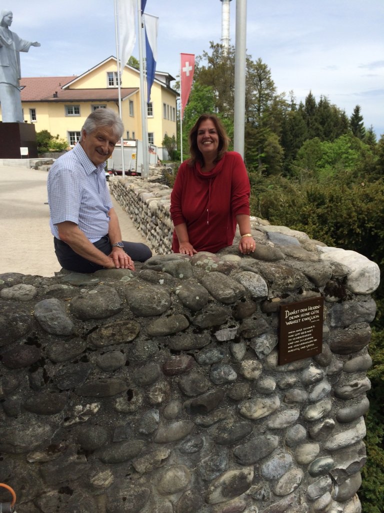 Am 10.Mai 2016 konnten wir die Lobpreistafel installieren. Während Marc Oppliger diese montierte, war eine aussergewöhnliche heilige Gegenwart Gottes um uns, wie ich es selten erlebe. Beim Start war der Himmel wolkenbedeckt und es tröpfelte, doch bis die Tafel an ihrem Ort hing, war der Himmel blau und sie wurde von der Sonne beschienen.. Wir konnten Gott nur danken für seine Gegenwart und diese wunderbare Gelegenheit die Lobpreistafel an diesem tollen Ort aufhängen zu können. Etwas abseits beobachteten wir, wie die Leute an das Geländer standen, um die Stadt zu bestaunen, und wie sie neugierig und erstaunt die Tafel und ihre wunderbare Botschaft lasen.